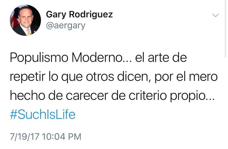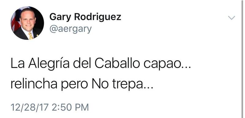 Si el honorable representante del Distrito 5, Georgie “El Mondoguito” Navarro, es el personaje político favorito de El Guitarreño, el gran Gary Rodríguez era algo así como su reemplazo cuando los güebos penepos se ponían a peseta. O quizás, por aquello de respetar a Georgie, pudiera decirse que este caballero de armadura cocotera oxidada era un compañero de batallas mediáticas.