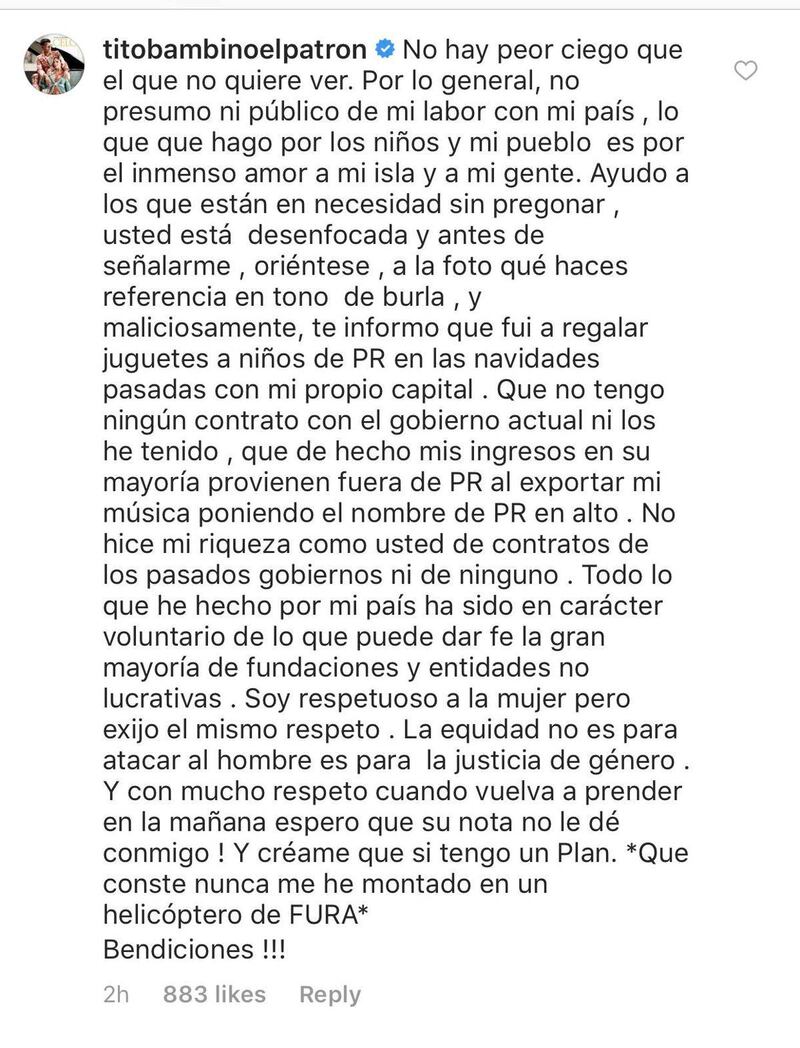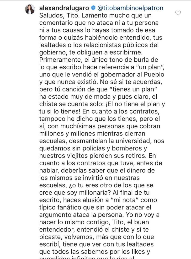 Pues sí, Lady Lúgaro le tiró duro a Tito, luego de que el otrora Bambino y ahora Patrón comentara un post en el que la excandidata a la gobernación criticaba el uso del helicóptero de FURA y ponía una fotito con el señor ChiquiTito.