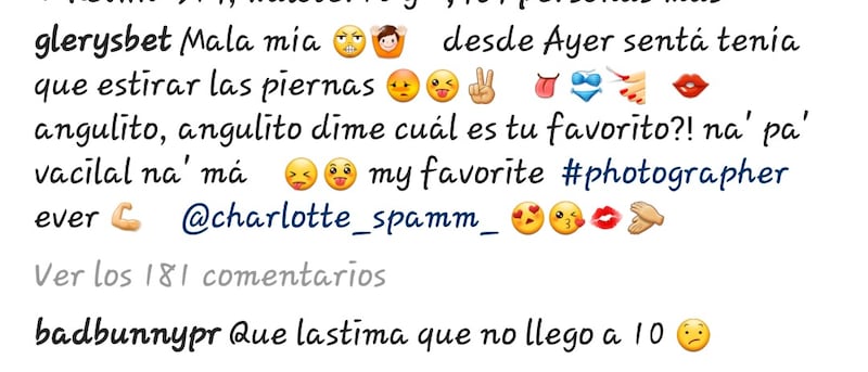 El señor Bunny, quien está decidido a encontrar el amor en la ciudad, sigue rondando el Instagram de la Glerys, y ayer cuando la también campeona del Yo-Yo 1986 subió otra sugestiva foto, el trapero volvió a atacar… aunque el resultado no fue el mismo.