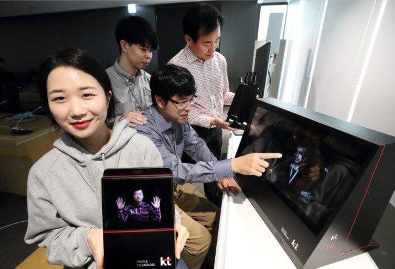KT está desarrollando llamadas de holograma como parte de sus nuevos servicios de medios de inmersión, que pronto estarán disponibles para los consumidores. Los servicios multimedia inmersivos de KT también incluirán Live VR de 360 grados, que es como ver un Live de Facebook pero en 360 grados y con un auricular de realidad virtual.