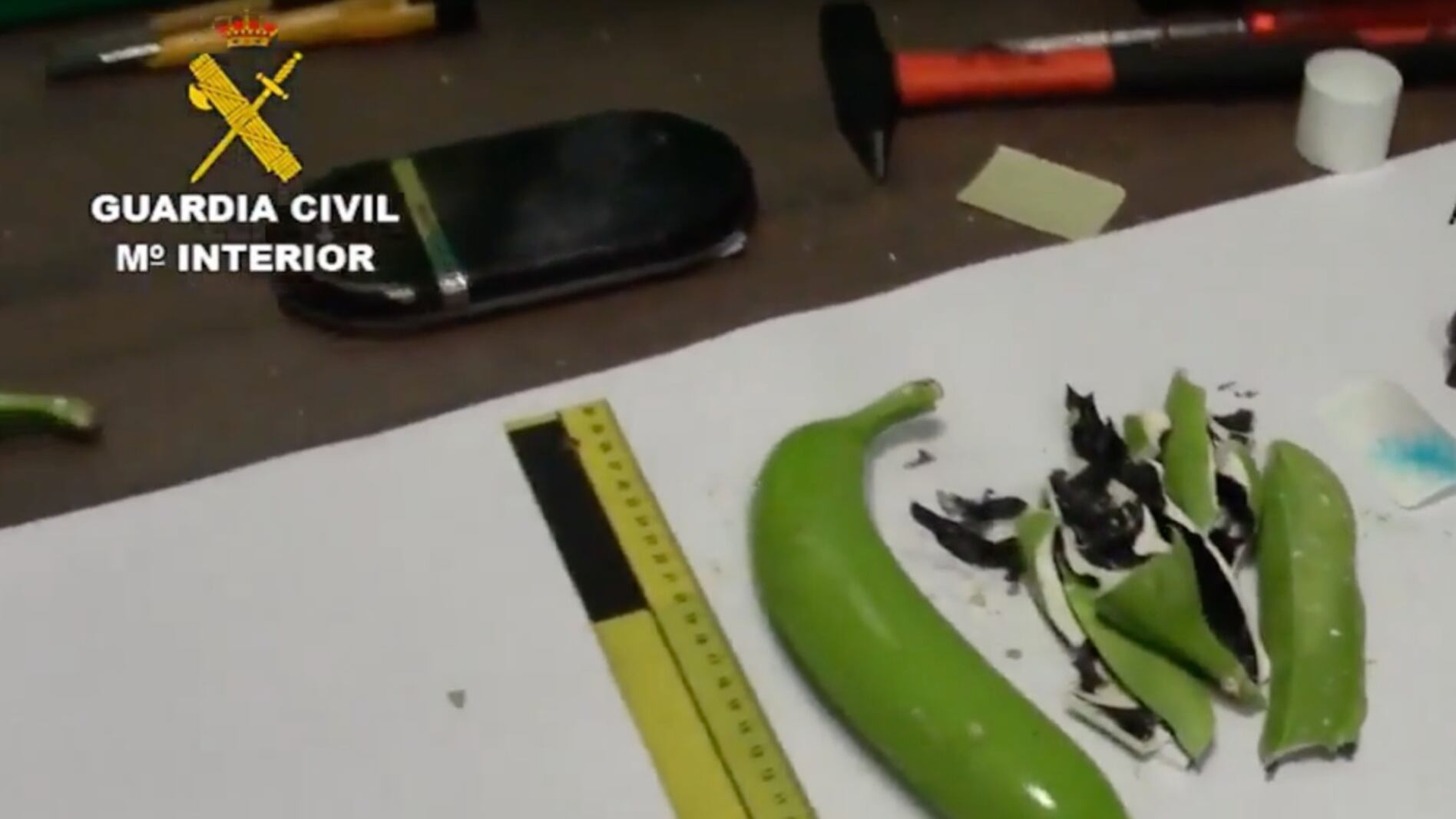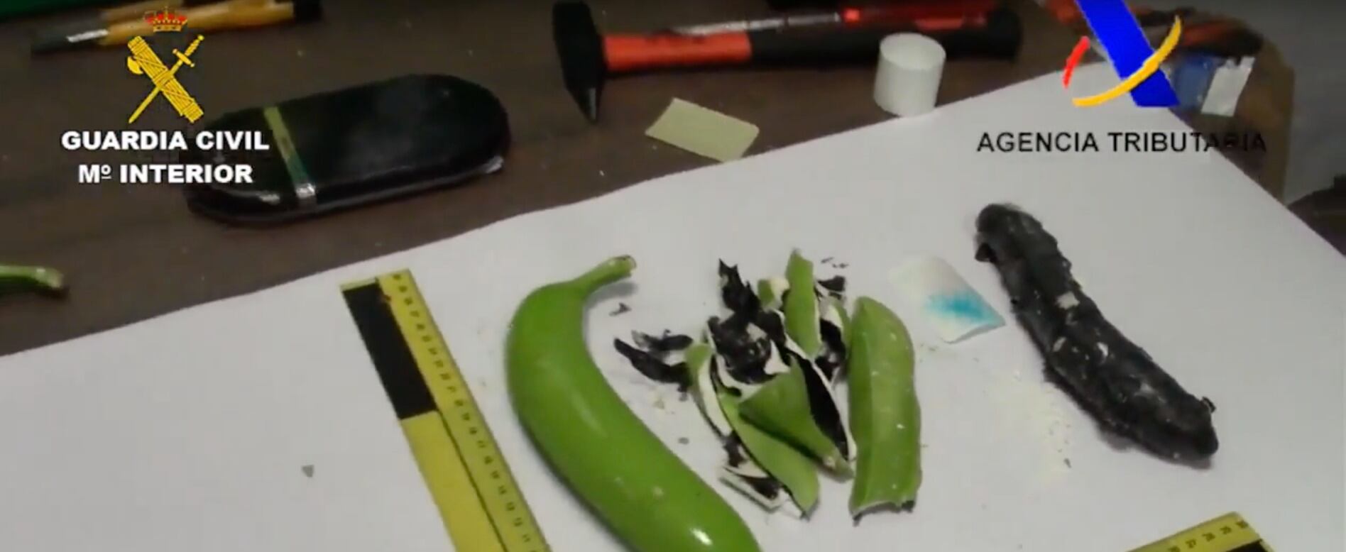 La Guardia Civil ha encontrado el pasado domingo en las ciudades de Valencia y Málaga 57 plátanos artificiales que contenían 7 kilos de cocaína -entremezclados entre bananas reales- y 10 kilos de la misma droga ocultos entre las solapas de las cajas de cartón que albergaban estas frutas procedentes de Sudamérica.