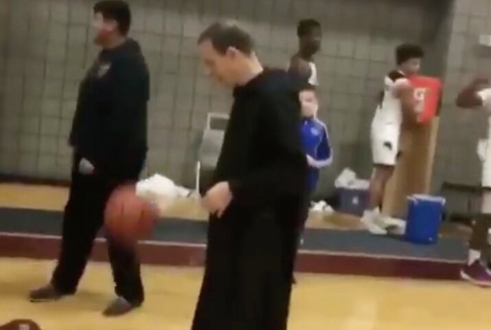 ¿Sacerdote baloncelista? Padre Ed la echó con una mano y con sotana