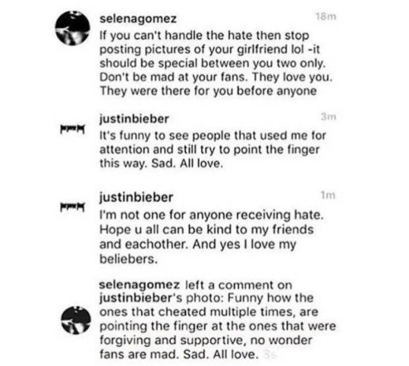 “Si no puedes manejar el odio, entonces deja de publicar fotos de tu novia lol. Debería ser algo especial solo para los dos. No te enojes con tus fans. Te aman. Te apoyaron mucho antes que cualquier otra persona”, escribió Gómez al respecto.