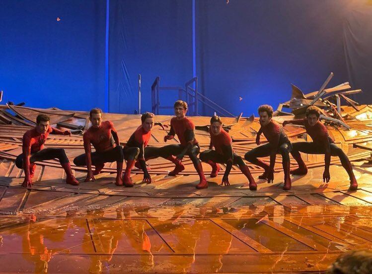Si nos pareció mucho ver a los tres Spider-Man Tobey Maguire, Andrew Garfield y Tom Holland en una misma película, pues ahora todo es superior al conocerse una de las imágenes de estos actores junto a sus dobles de acción.