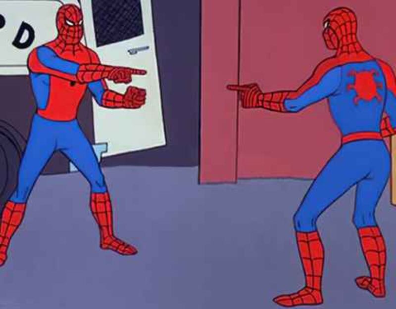 La imagen original de dos versiones de Spider-Man señalándose mutuamente proviene de la serie animada que salió a mediados de los 60. Se trata del episodio titulado “Double Identity” (“Doble identidad”) en el que un villano intenta hacerse pasar por el héroe, metiéndolo en problemas. Sin embargo, en el último año se popularizó en la web en las últimas décadas.