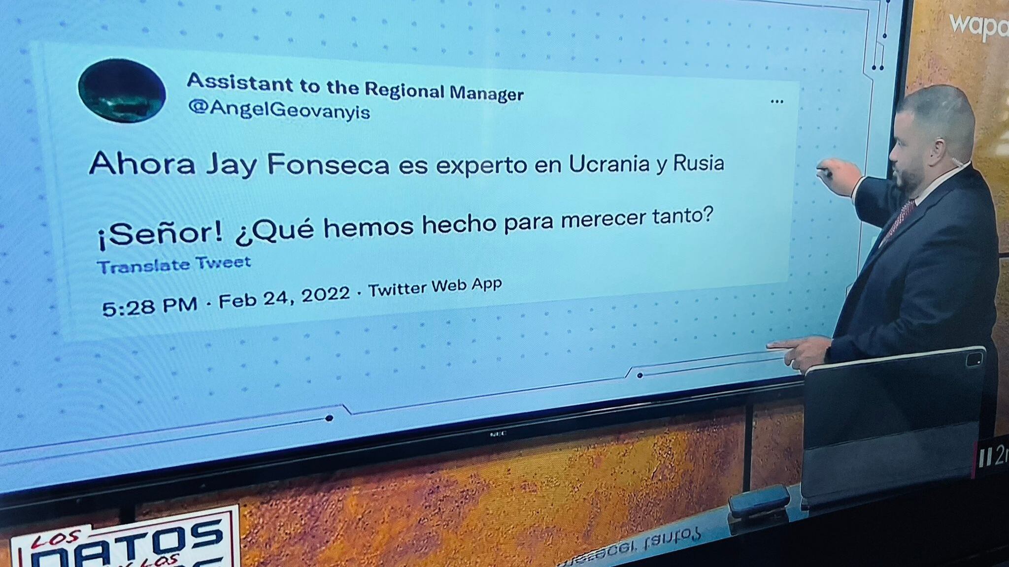 Durante su programa Los Datos son Los Datos, Jay Fonseca, presentó un tuit (sin explicarles a los doñitas lo que es Twitter) para acabar con un hater que le dijo que no sabía ná' sobre el conflicto entre Rusia y Ucrania.