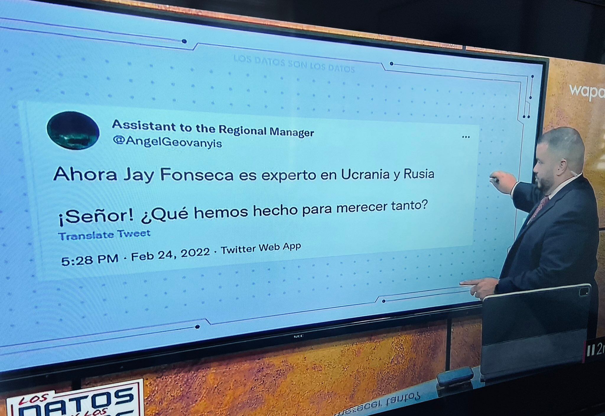Durante su programa Los Datos son Los Datos, Jay Fonseca, presentó un tuit (sin explicarles a los doñitas lo que es Twitter) para acabar con un hater que le dijo que no sabía ná' sobre el conflicto entre Rusia y Ucrania.
