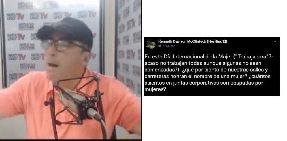 “En este Día Internacional de la Mujer (“Trabajadora”?-acaso no trabajan todas aunque algunas no sean comensadas?), ¿qué por ciento de nuestras calles y carreteras honran el nombre de una mujer? ¿cuántos asientos en juntas corporativas son ocupadas por mujeres?”, escribió Kenneth en Twitter.