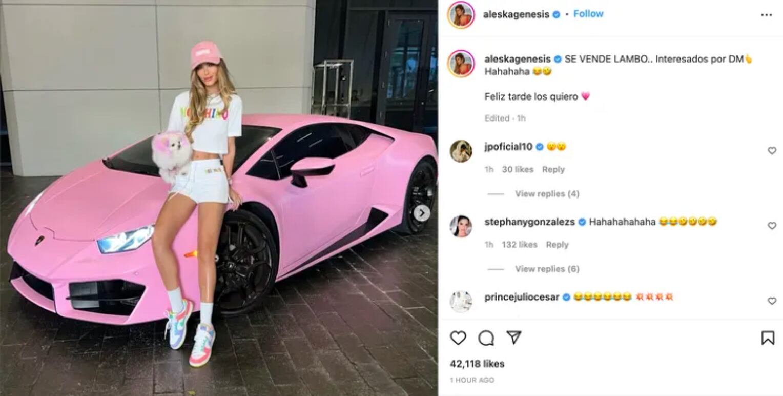 Pues no seamos bobos y aprendamos de Génesis Aleska quien compartió que está vendiendo el Lamborghini rosita que le regaló Nicky Jam. (No es boba)