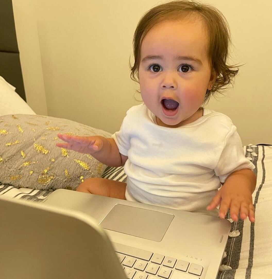 La niña de 1 año, que posee una cuenta de Instragram manejada por su padres, lució sorprendida frente a la pantalla de una computadora.