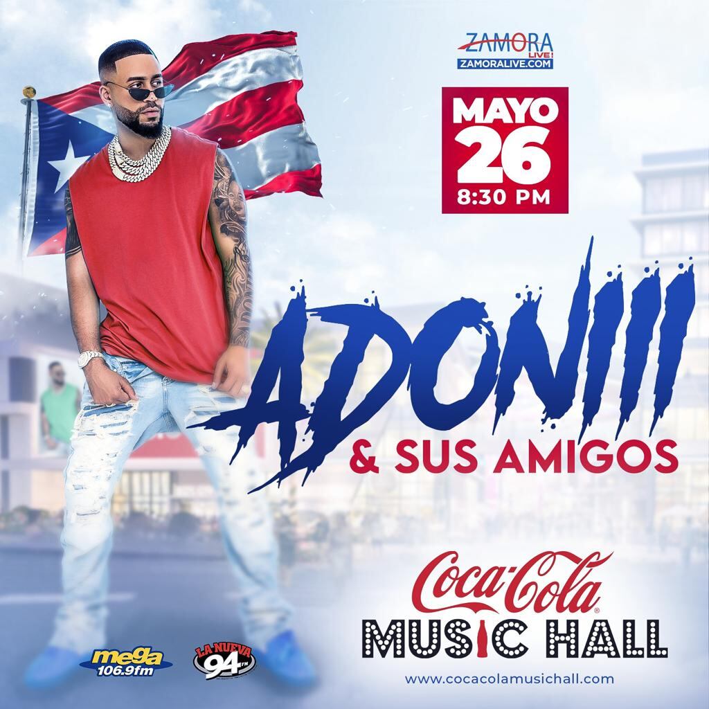 El evento “DJ Adoni y Sus Amigos” promete ser una experiencia musical única con la presencia de varios artistas de diversos géneros musicales quienes se unirán a DJ Adoni en el escenario para ofrecer una noche inolvidable. La audiencia podrá disfrutar de una noche de ritmos contagiosos, sorpresas y diversión en un evento apto para todas las edades. Las puertas del Coca Cola Music Hall abrirán a las 7:30 PM y el espectáculo comenzará a las 8:30 PM (AST).