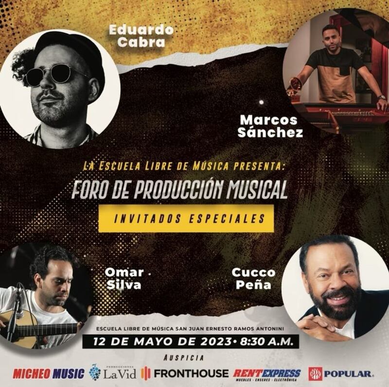 “Será una ocasión muy especial, ya que contaremos con la mentoría de estos destacados músicos y productores de distintas generaciones, géneros y mercados dentro del ámbito de la producción musical”, expresó Josiane Feliciano, profesor de cuatro y guitarra de la Escuela Libre de Música.