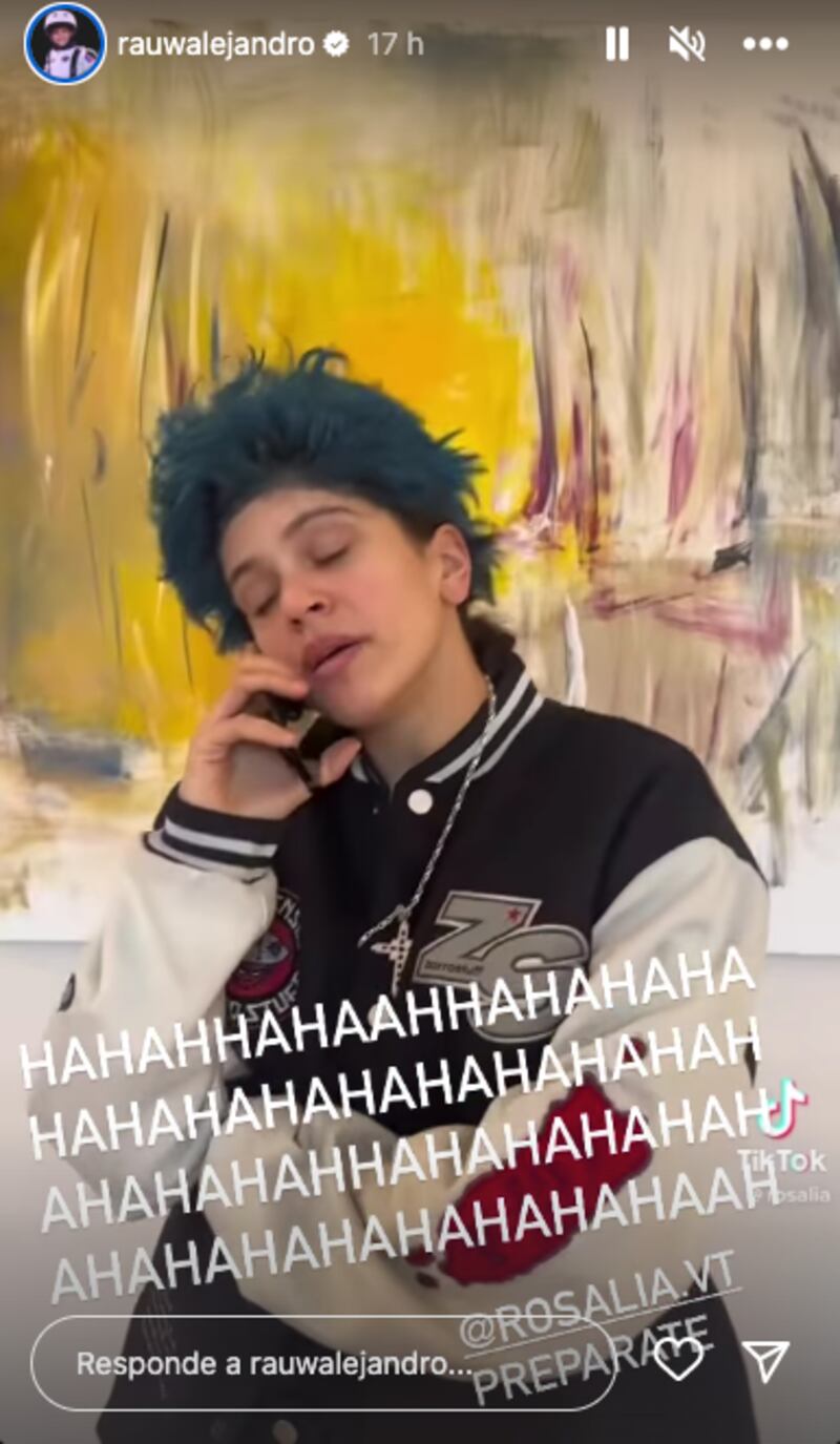 Con peluca azul, jacket “over sized” y una actitud de Carola, Rosalía imitó a Rauw Alejandro pa’ vacilar en un video de TikTok. (Siguen demostrando que su relación es real)
