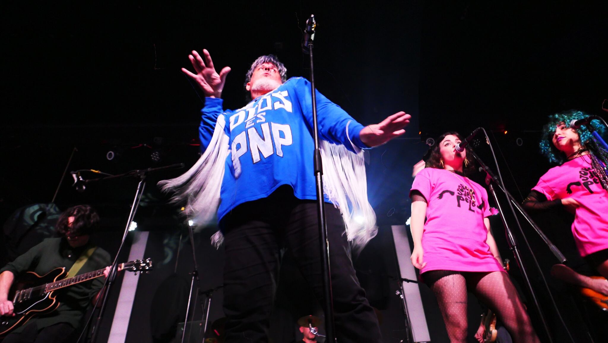 “Dios es PNP”. Un hombre que utilizó esta camisa durante una presentación de su banda ha vuelto loco a los doñitos que se creen todo lo que ven en la red social oficial del bochinche y los ‘fake news’, Facebook.