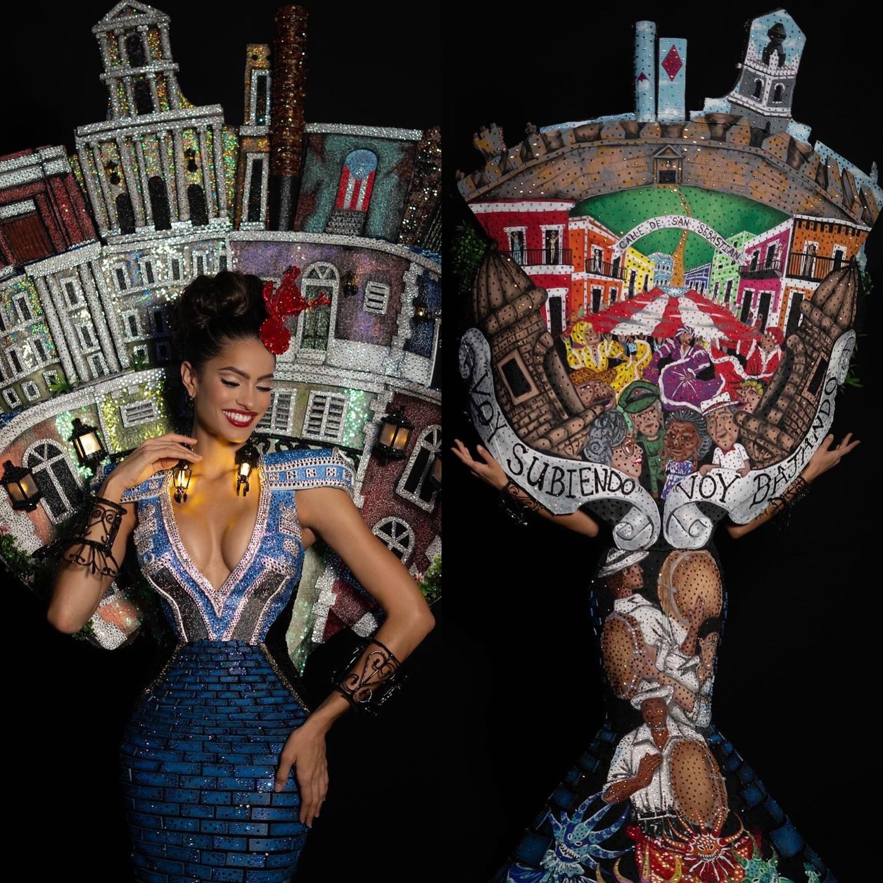 “Para mí es un honor llevar un ajuar que simbolice una de las celebraciones más grandes que se dan en nuestro Puerto Rico. Las Fiestas de la Calle San Sebastián son una invitación a que los puertorriqueños honremos, apreciemos y conectemos con nuestra cultura. Es un recuerdo a nuestra memoria de lo privilegiados que somos de haber nacido aquí. Este año, el universo conocerá un poco más de nuestra cultura vibrante, de nuestra arquitectura y nuestro espíritu lleno de alegría. Para mí es el orgullo más grande ser quien lleve esta obra de arte. ¡Qué viva Puerto Rico y su hermosa gente!”, comentó la actual reina.
