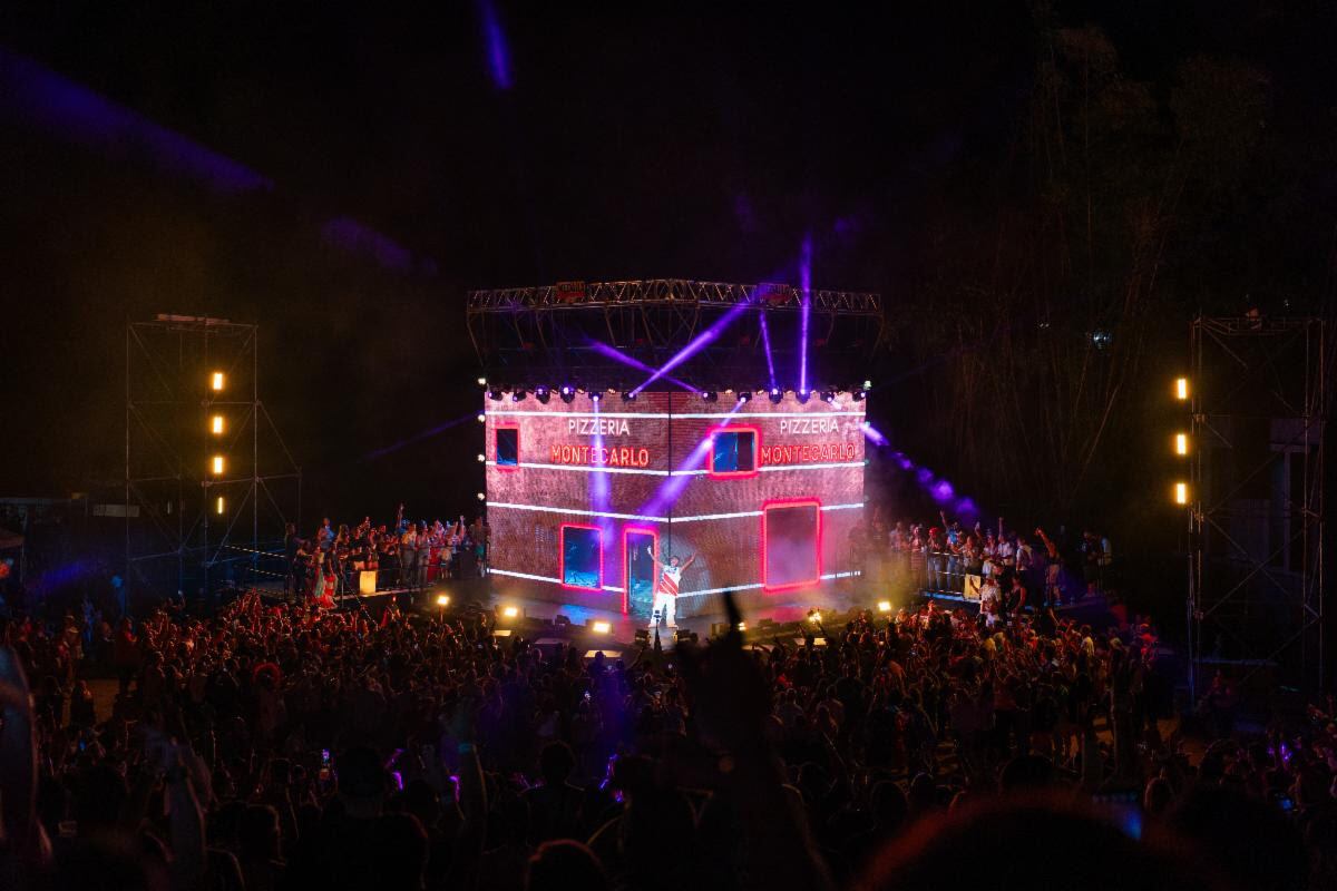 El show comenzó bastante puntual, y desde el principio vendía la experiencia de “los tiempos de antes” con un ring de lucha libre empezando el recorrido. Hace muchos años, Ismael fundó una compañía llamada CWF (Caobos Wrestling Federation) y daban la cartelera todos los domingos en la cancha de la urbanización, así que este aguerrido “deporte” es parte de la carrera de la banda. También había una guagua de pizzas que hacía alusión a Monte Carlo, y la producción se encargó de tener disponible lo más que necesitan los señores del tercer y cuarto piso: carpas con cervezas y muchas letrinas.