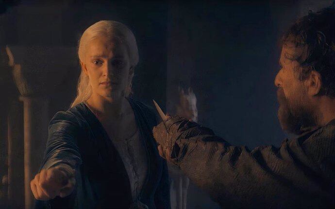 Sin embargo, en el desarrollo del episodio se observa como entran a la habitación de la reina Helaena, para amenazarla y ponerla a elegir por la vida de uno de sus dos hijos.