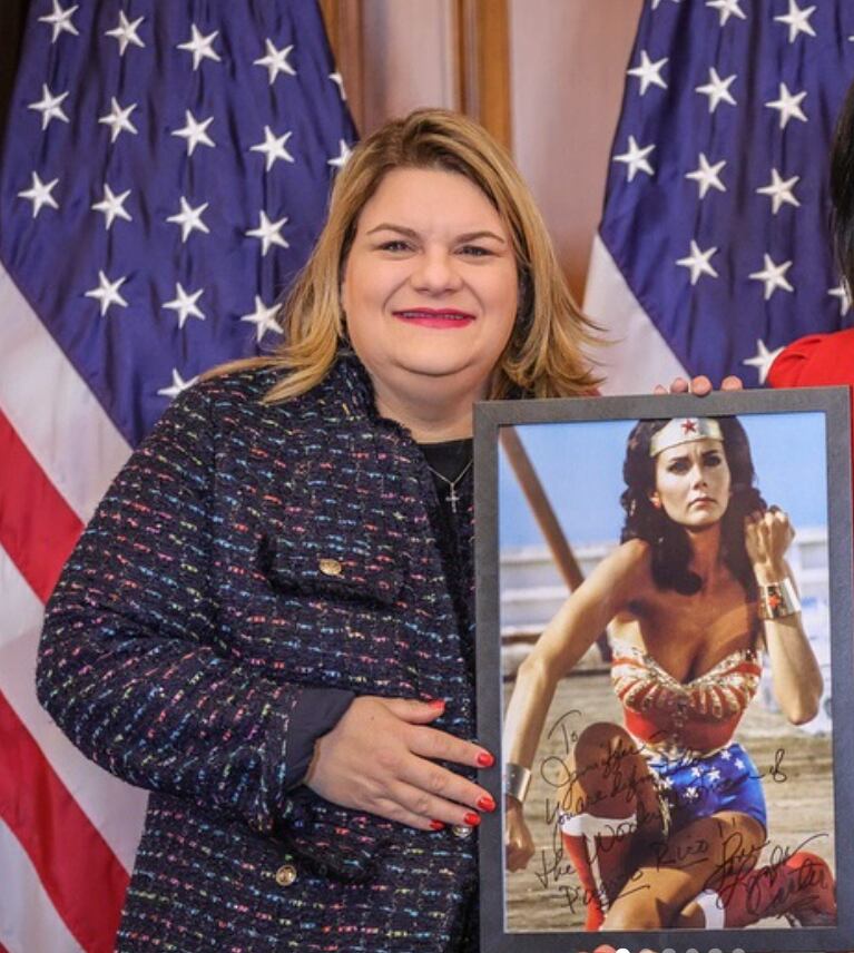 Así que ya pueden esperar que cuando llegue a Puerto Rico Jenniffer reemplazará el cuadro de Pedro Pierluisi por el cuadro de la Mujer Maravilla.