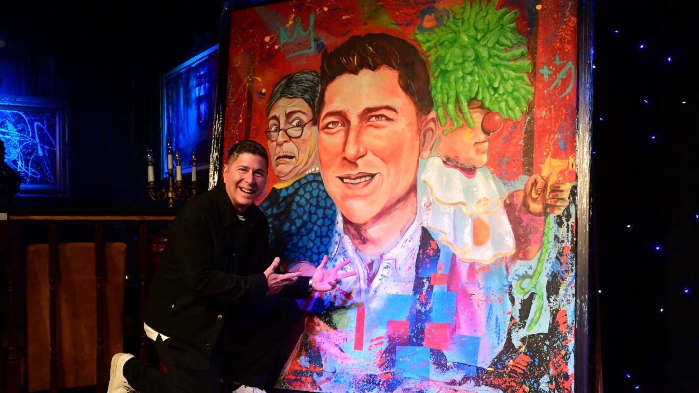 El comediante Raymond Arrieta fue homenajeado con una pintura en su honor, que destaca su larga trayectoria junto a sus personajes Plinia Palerm y Trompetilla.