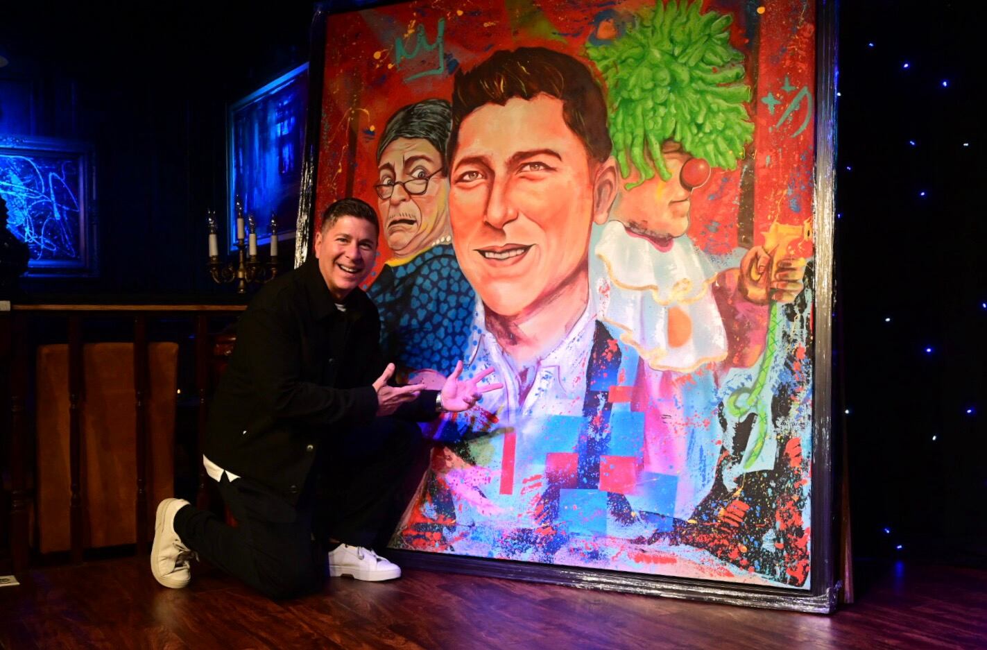 El comediante Raymond Arrieta fue homenajeado con una pintura en su honor, que destaca su larga trayectoria junto a sus personajes Plinia Palerm y Trompetilla.
