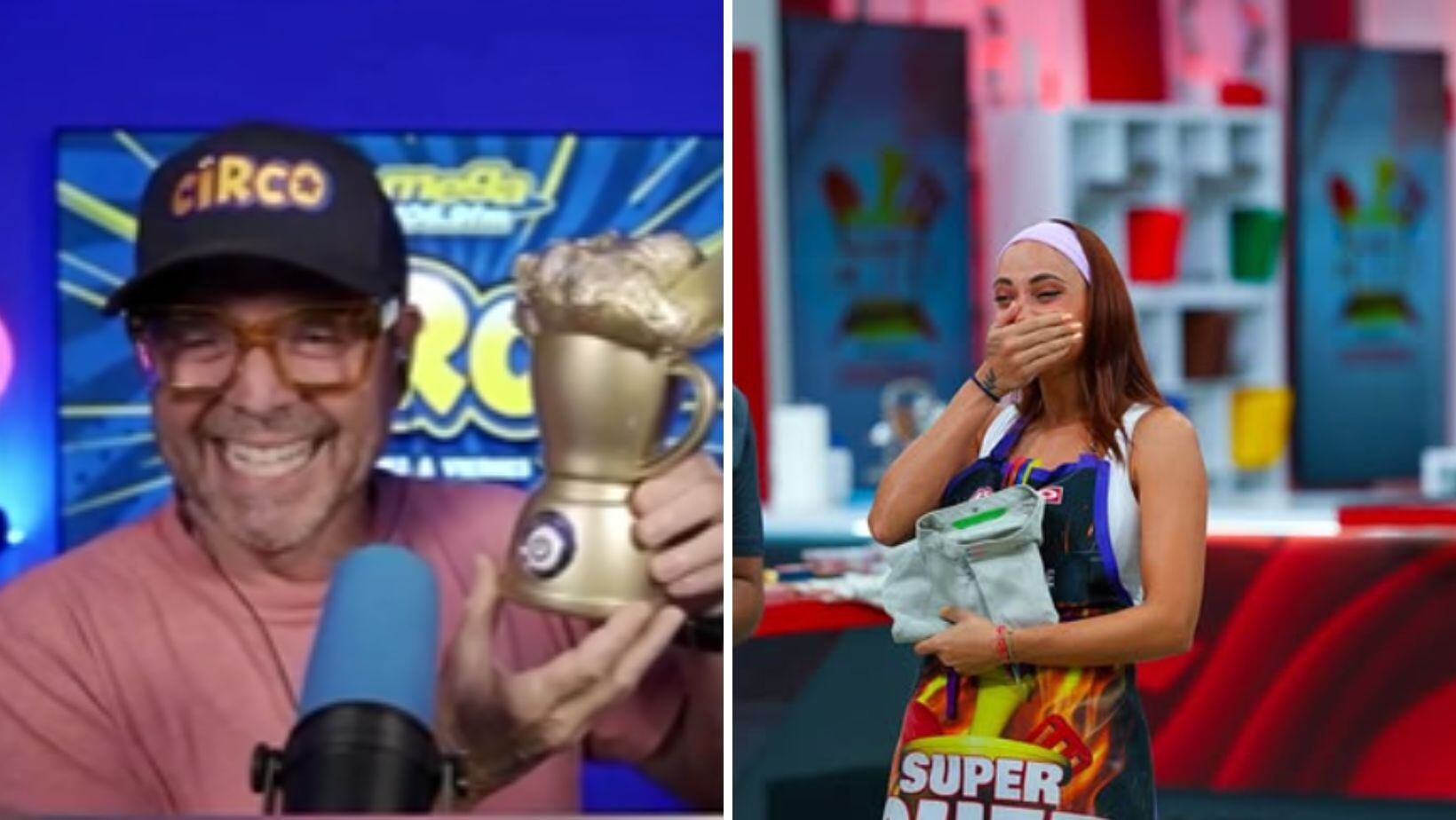 Fue en el segmento de “El Güimo Investigador” cuando El Gangster mostró el trofeo que él mismo confeccionó y que hace referencia al momento en que Castro insertó un cuchillo dentro de la licuadora y la herramienta de cocina salió volando, provocando uno de los momentos más peligrosos de la competencia de WAPA TV, que culminó la semana pasada.