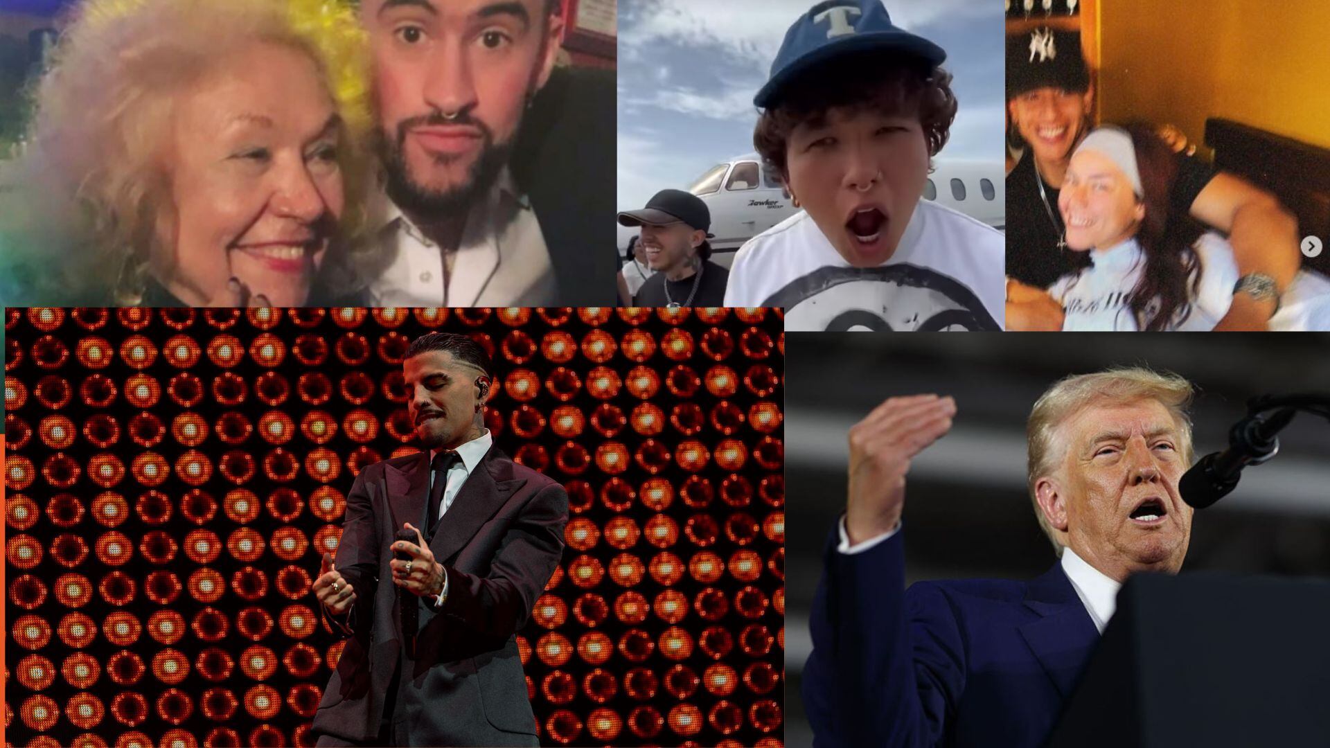 Resumen junio 2025 Montaje El Calce. Toñita y Bad Bunny, Beéle, Daddy Yankee y Jessaelys, Rauw Alejandro, Donald Trump.