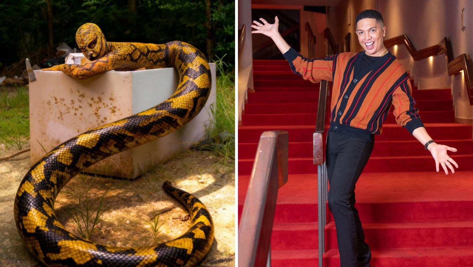 Villarini se disfrazó de una “pitón reticulada”, serpiente que ha impactado fuertemente varios sectores en la isla por el aumento de su presencia.