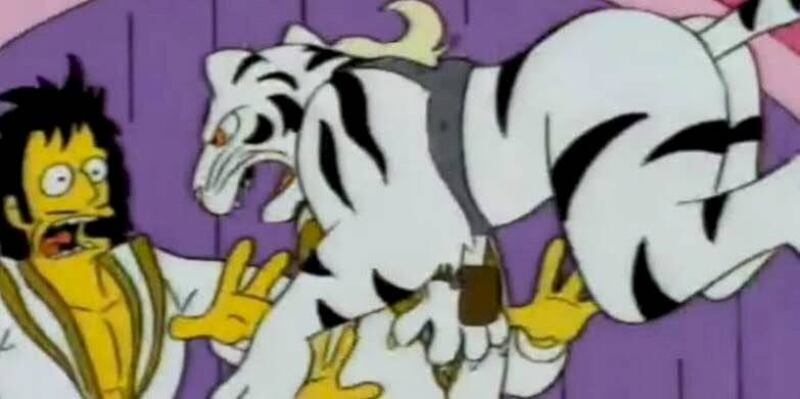 Un par de domadores de Las Vegas fueron parodiados en Los Simpson, estos se llaman en la vida real Siegfried & Roy y su show con tigres de bengala es mundialmente famoso. En el episodio de 1993, el tigre de bengala de Los Simpson atacó al personaje que parodiaba a Roy Horn. 10 años después ocurrió ese ataque, en 2003, justamente un tigre de bengala atacó a Roy durante uno de sus actos.