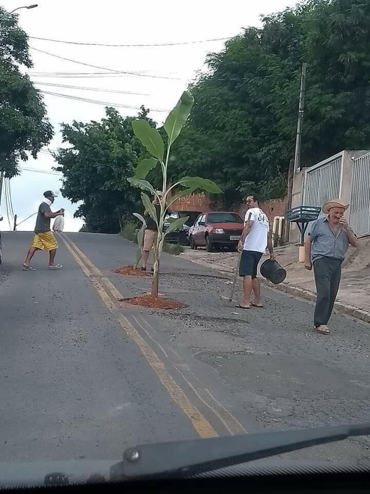 Se ha vuelto viral la imagen de unas matitas en unos hoyos. Sí, ante los cráteres que hay por ahí en cuanta carretera uno conduce, una gente se dio a la tarea de adoptar unos hoyitos y le dieron vida a unas plantitas.