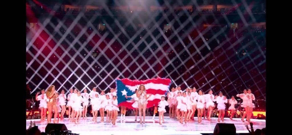“¡Latinos!”, grito Jennifer Lopez quien mostró una bandera de Estados Unidos. Después las dos cantantes mostraron sus mejores pasos de baile y contonearon sus caderas al ritmo “Waka waka”.