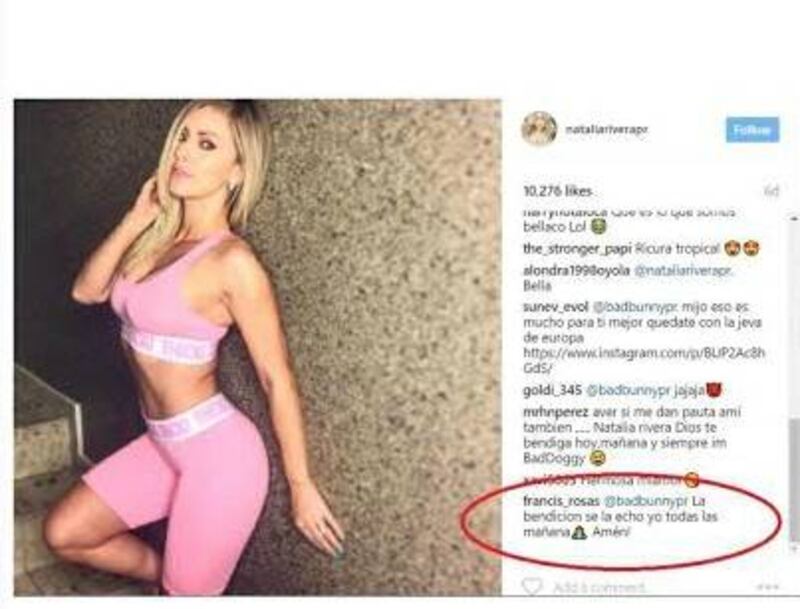 El trapero y asesino de la moda, Bad Bunny, no se pudo conformar con darle un like a la foto de Natalia Rivera en su cuenta de Instagram, y decidió dejarle un comentario… bueno, vamos a ser sinceros: le echó un poco de maíz de forma cristiana.