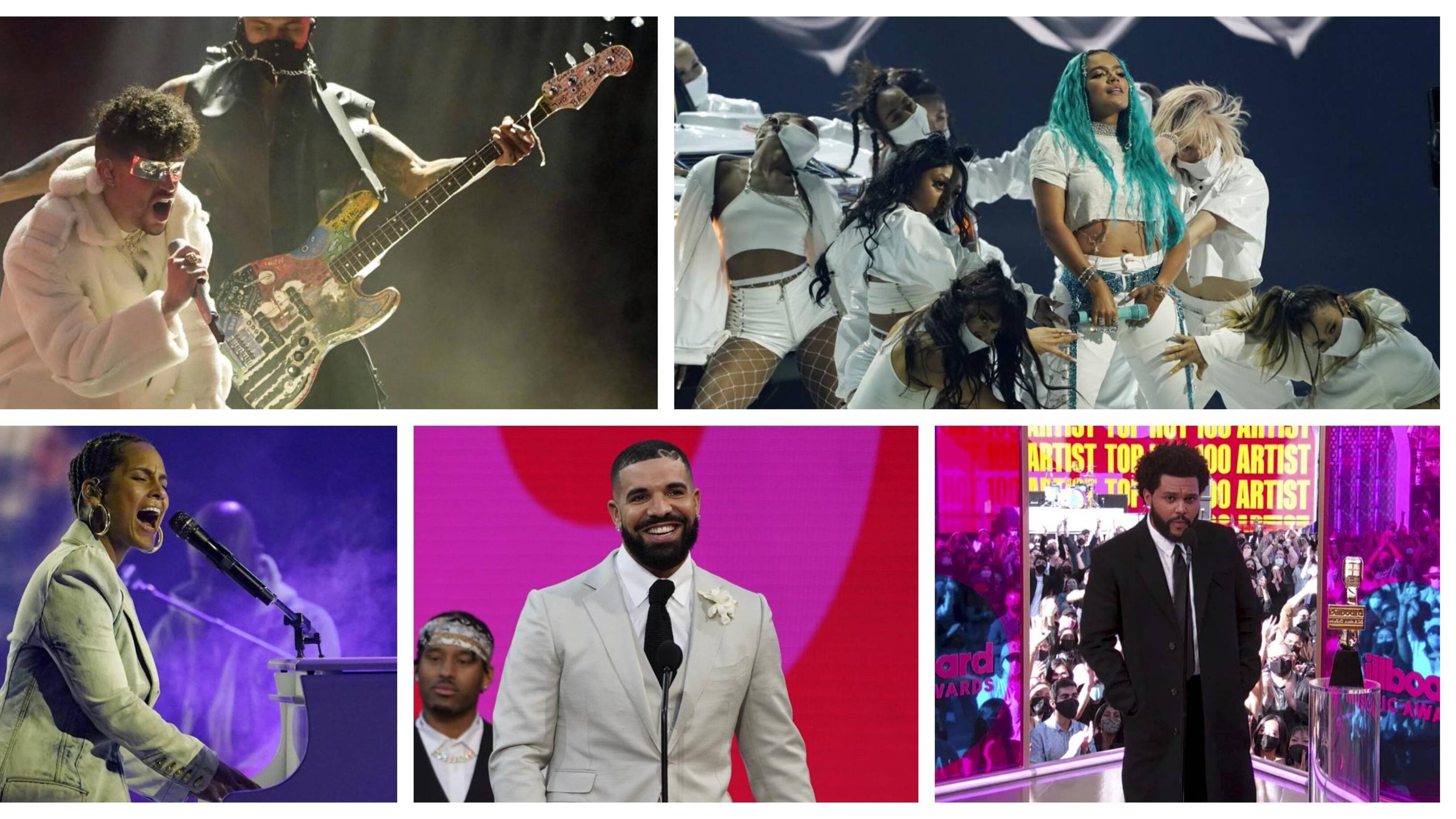 El fallecido rapero Pop Smoke también fue un gran ganador: obtuvo póstumamente cinco honores, entre ellos a mejor artista nuevo y mejor artista de rap, mientras que su debut “Shoot for the Stars, Aim for the Moon” ganó mejor álbum de rap y mejor álbum Billboard 200, que su madre aceptó en su nombre. “Gracias a los fans por honrar la vida y el espíritu de mi hijo, tanto que continúa manifestándose como si todavía estuviera aquí en carne y hueso”, dijo Audrey Jackson. Otro rapero fallecido fue homenajeado durante el programa. Antes de presentar la mejor canción de rap para DaBaby, Swizz Beatz dedicó un momento a aquellos que murieron recientemente en el hip hop, incluido su amigo cercano y colaborador DMX. Y el rapero y activista de Houston Trae the Truth, que recibió el premio Change Maker, terminó su discurso con una poderosa frase: “Todavía necesitamos justicia para Breonna Taylor”. Karol G ganó el premio a la mejor artista femenina latina y Eslabón Armado el de mejor dúo/grupo latino. Tanto Bad Bunny como Karol G cantaron en la ceremonia en números pregrabados. BTS también recibió cuatro galardones y cantó, y la cantante emergente Gabby Barrett obtuvo tres premios, incluyendo a mejor artista country femenina y mejor canción country por su éxito “I Hope”, cuyo remix con Charlie Puth ganó mejor colaboración. “Ay Dios mío. Muchas gracias a todos. Esto significa mucho para mí”, dijo Barrett sin poder contener las lágrimas. “Llevo 10 años trabajando muy duro… para llegar aquí”. Otro astro country ganó en grande el domingo, pero estaba vetado del espectáculo: Morgan Wallen, quien fue captado en cámara usando un insulto racial a principios de año, ganó tres honores incluyendo mejor artista country y mejor álbum country por “Dangerous: The Double Album”, que de cualquier modo ha tenido gran éxito en las listas de música pop y country. Wallen competía por seis premios y la empresa productora de los Billboard, dick clark productions, dijo que no podía evitar que fuera finalista o ganara, porque los finalistas se basan en ventas digitales y de álbumes, streaming, transmisión radial y desempeño en redes sociales. La entrega de los Premios Billboard comenzó con una actuación de DJ Khaled, H.E.R. y Migos que revivió el ambiente de conciertos un año después de que los espectáculos en vivo fueran suspendidos debido a la pandemia. Doja Cat y SZA, acompañadas por un grupo de bailarines con atuendos futuristas, interpretaron su éxito “Kiss Me More” adentro del recinto, donde los asientos estaban vacíos. Alicia Keys celebró el 20mo aniversario de su exitoso debut “songs in A minor” cantando temas del álbum que incluyeron el éxito “Fallin’”. La actuación fue presentada por la ex primera dama estadounidense Michelle Obama. También participaron, entre otros, Twenty One Pilots, Duran Duran, Jimmy Jam & Terry Lewis, los Jonas Brothers y Glass Animals. Estrellas como Taylor Swift, Lady Gaga y Kanye West ganaron premios pero no estuvieron presentes para recibirlos. Machine Gun Kelly, quien comenzó haciendo rap pero recientemente ha tenido éxito en las listas de rock, ganó mejor artista de rock y mejor álbum de rock. “Lancé mi primer mixtape hace 15 años y este es el primer escenario grande al que me han invitado a recibir un premio”, dijo el músico, quien besó a su novia, la actriz Megan Fox, antes de subir al escenario. “Para la caja en que la sociedad sigue tratando de ponerme, necesitan un material más fuerte porque no pueden retenerme en ella”, proclamó.