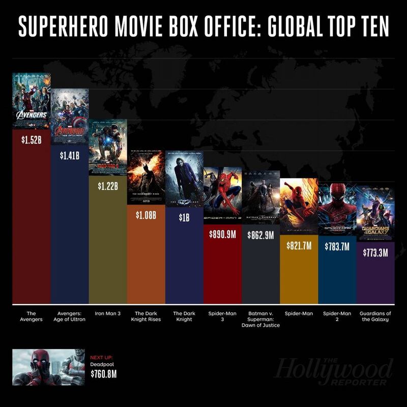 Actualmente cuenta con 862.9 millones en la bolsa, se estima que su taquilla final sea de 875 milloncitos, lo que se ubicaría en la posición número 7 de las películas de superhéroes más taquilleras de la historia, con riesgo de caer al octavo por el desempeño de Civil War.