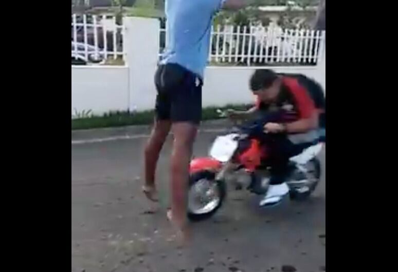 Sí, Juanito quería brincar una motora en movimiento. Desconocemos si su misión solo consistía en pescar likes, pero lo logró. Dicen las malas lenguas que Juanito ahora es un mártir en el barrio. Aunque a decir verdad, en las redes ya fue bautizado como un tipo BIEN astuto y brillante.