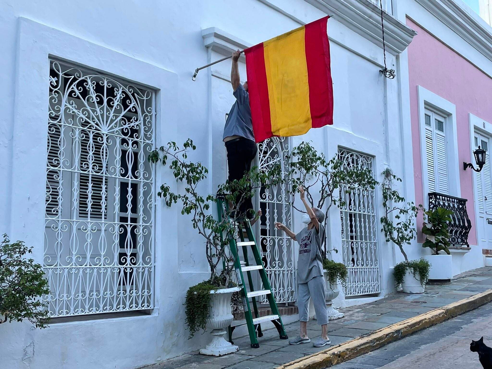 A través de Twitter se ha compartido una fotografía de unos vecinos que colocaron una bandera de España en una de las residencias del Viejo San Juan.