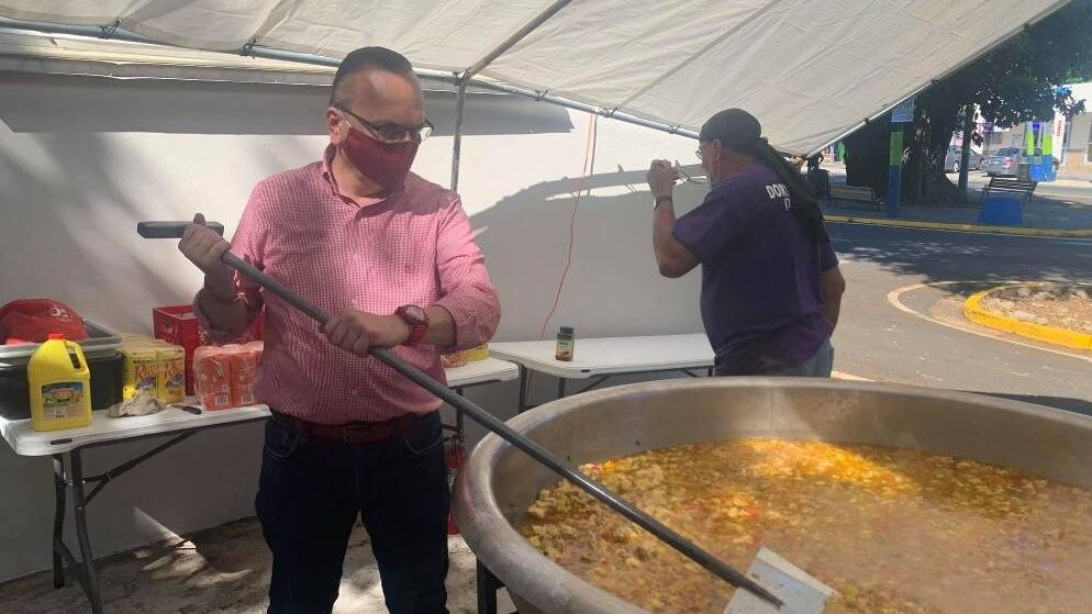 Resulta que hicimos un extenso y profundo trabajo investigativo y encontramos varias fotos interesantes, el 13 de junio, un día antes de que anunciara que tiene el virus, el candidato publicó unas fotos donde se le ve meneando un mega sopón e invitando a la gente a almorzar en el sector La Alcantarilla en Camuy.
