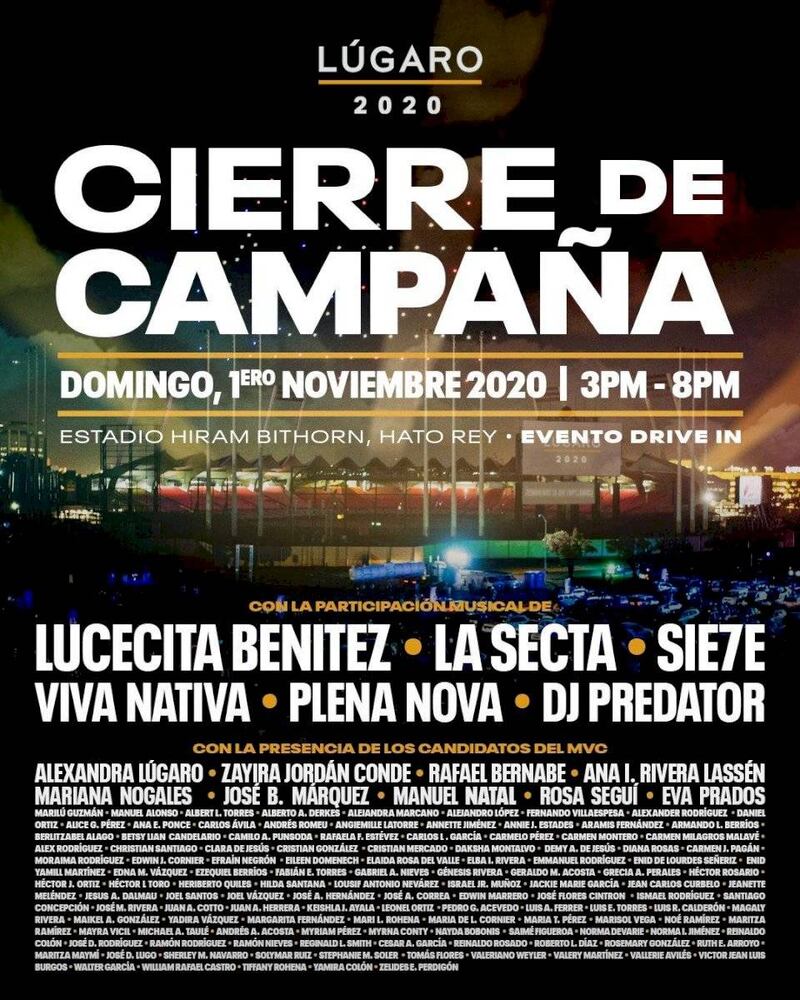 Mientras tanto, el Movimiento Victoria Ciudadana (MVC) hará lo propio en el estadio Hiram Bithorn de Hato Rey, donde dirán presente Lucecita Benítez, DJ Predator, La Secta, Sie7e, Vivanativa y Plena Nova.