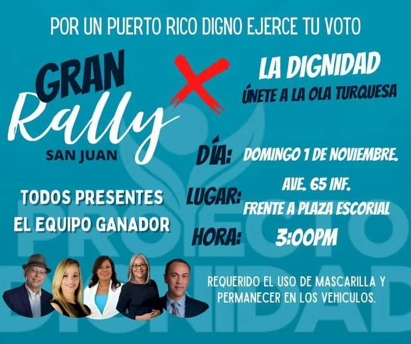 De igual forma, el partido Proyecto Dignidad celebrará su cierre con una actividad pautada para las tres de la tarde en Carolina.