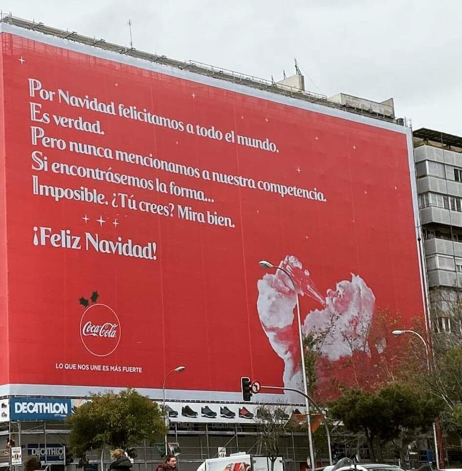 En varias ciudades de España Coca Cola demostró su espíritu navideño: sutilmente felicitó a Pepsi.