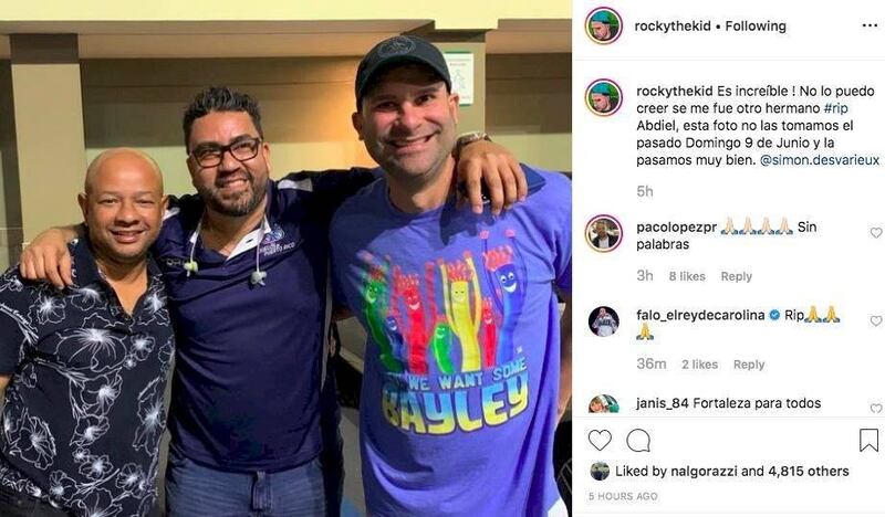 Rocky publicó en sus redes sociales una foto con Abdiel, la cual fue capturada el pasado 9 de junio.”Es increíble ! No lo puedo creer se me fue otro hermano #rip Abdiel, esta foto no las tomamos el pasado Domingo 9 de Junio y la pasamos muy bien” (sic.), escribió el animador de “El Despelote” (94.7FM).