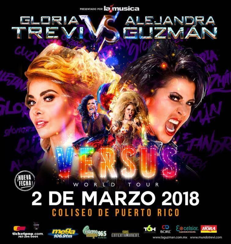 SBS Entertainment anunció que “Versus World Tour” de las divas mexicanas Gloria Trevi y Alejandra Guzmán se presentará -en nueva fecha- el próximo 2 de marzo en el Coliseo de Puerto Rico.