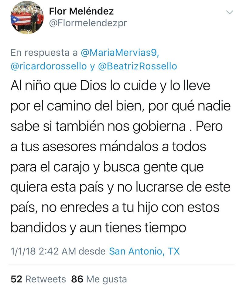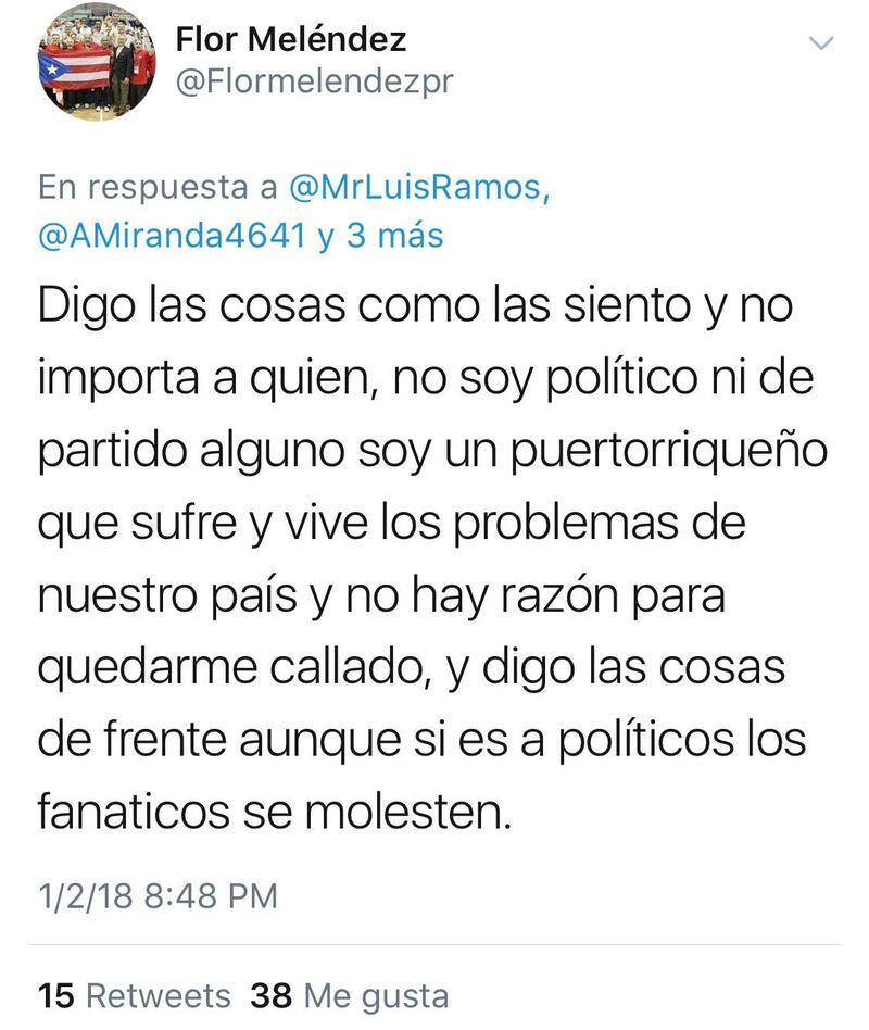 Pero ajá, ante el derroche de sentimiento paternal lo menos que se esperaba el hijo del Mesías era una zona 2-3-2 en la cancha tuitera. Y chacho, la leyenda del baloncesto nacional, Flor Meléndez, se la echó de tres y dejó a medio mundo boquiabierto, pues jelou, es Flor y uno sabe que sus consejitos bajan como asopa'o de guinea.