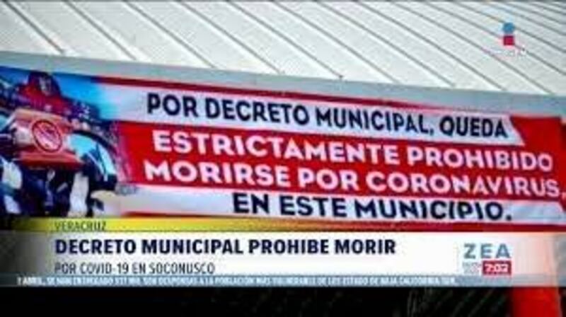 Un vanguardista decreto municipal fue emitido en la mañana del lunes 4 de mayo, cuando el alcalde Rolando Sinforoso Rosas, collera con el más alto puesto de mando en este municipio coyunto, mandó a colocar a primeras horas una lona en la plaza central, donde se hace pública la prohibición a todos los habitantes de fallecer a causa de la pandemia de coronavirus (COVID-19).