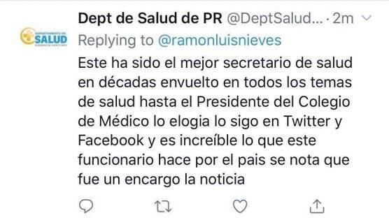 Nada más basta con ver el papelazo que parece haber realizado en las redes sociales el Departamento de Salud, quien aún mantiene a Rafael Rodríguez como Secretario, no se sabe cómo, pues ha sido uno de los más criticados por su gestión como Secretario a la misma vez que mantiene su práctica privada como cirujano.