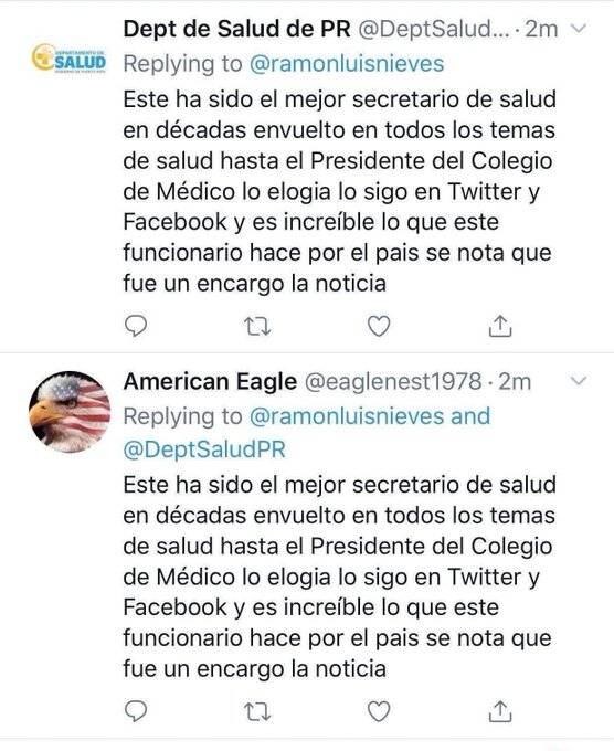 Pues ahora resulta que las redes sociales del Departamento de Salud las administra un fotuto de los azulitos, que en su cuenta oficial de fotutaje posee el peculiar nombre @EagleNest1978. Eso salió a relucir de manera orgánica en abril del pasado año, pero luego de una breve investigación ayer que realizó el Centro Tuitero de Periodismo (CTP), quien desbordó el timeline con gocitos al respecto.