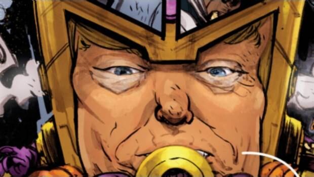 Como podemos ver, M.O.D.A.A.K. no es otro que Trump, quien señala que si América no actúa, él tendrá que hacerlo; bajo los mismos argumentos que señala su contraparte de este universo. Esto contrasta bastante con las apariciones especiales que tenía Barack Obama en los cómics, donde siempre era puesto como un ser positivo y conciliador.