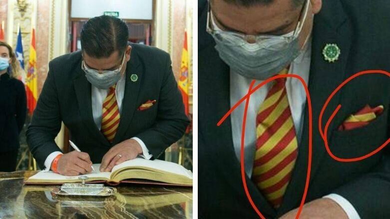 Durante el día de ayer, Tatito y su panita Ángel “Marbete $5” Matos visitaron a la presidenta del Congreso, Meritxell Batet y sus ayudantes aprovecharon para tomarse selfies con la señora como si estuvieran visitando a cualquier vecina de una comuna por allá. Sin embargo, lo que más llamó la atención de los que prestaron atención al detalle fue la corbata y el pañuelo con los colores de Cataluña que utilizó el presidente cameral. tal vez está pidiendo la independencia de la provincia antes que la del mismo Pe Erre donde ama la colonia.