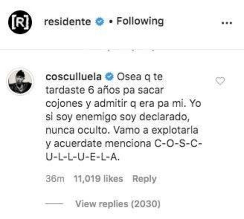 ¡Se volvió a prender el fogón! Residente zumbó fuego por Instagram y Cosculluela parece que se picó, lo que sigue aumentando la tensión entre ambos artistas del género urbano.