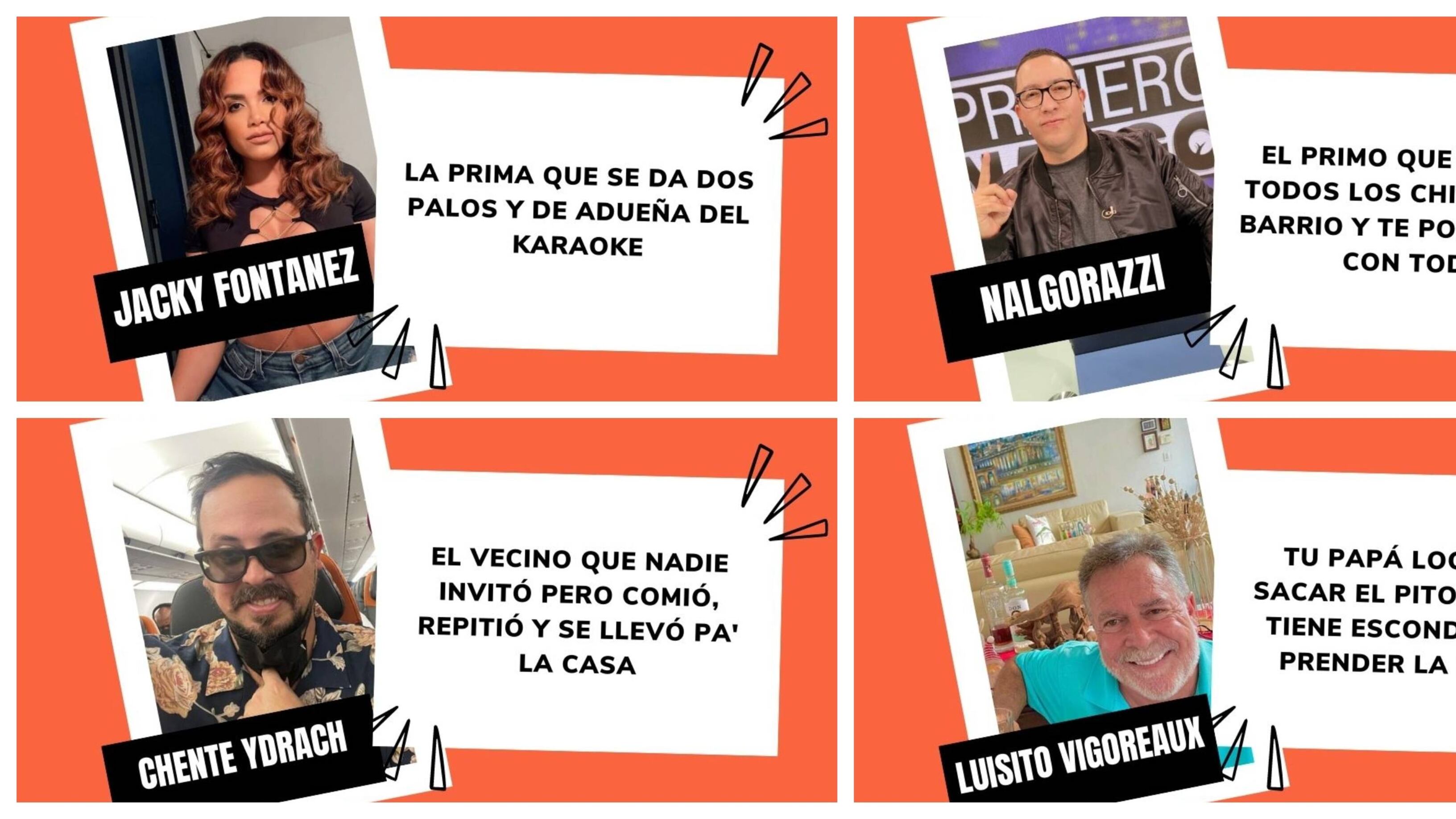 En la farándula local tenemos varias personas que nos recuerdan a esos personajes de la familia y que no nos cabe duda de que son así en sus fiestas familiares. Por eso hoy, se los presentamos y recuerden que esto es puro vacilón no lo cojan a pecho que no queremos que les caiga mal el tembleque.