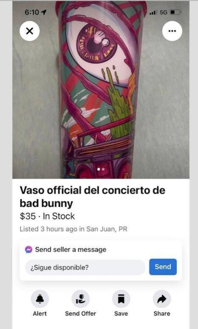 Un ganso que se quiere hacer chavos con cosas que no son suyas puso en venta un vaso que le regalaron en el museo de Bad Bunny que se llevó a cabo este fin de semana como parte del concierto en el Estadio Hiram Bithorn.